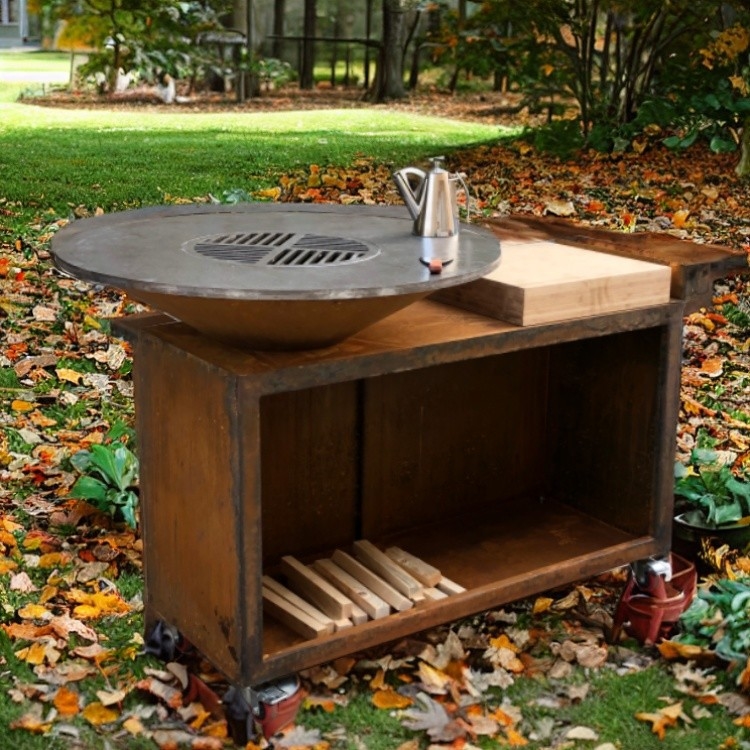 Die Wahl dieses Corten Steel BBQ Grills mit Holzlager bedeutet die Wahl einer hochwertigen, umweltfreundlichen und unterhaltsamen Outdoor-Grillmethode.Genießen wir den Spaß und die Wärme des Grillens unter blauem Himmel und weißen Wolken.!